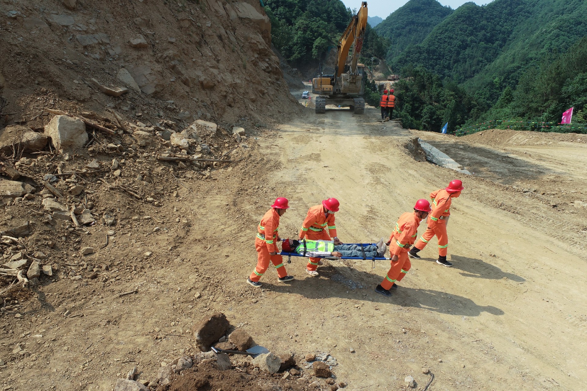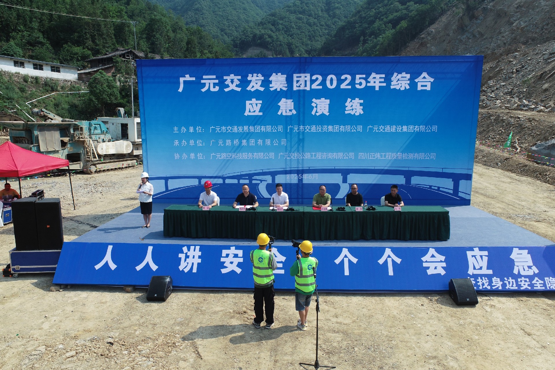 剑阁县下寺至利州区月坝公路项目(三个石至硝洞垭段)举行综合应急演练,模拟山洪引发泥石流险情处置、森林火情扑救等场景,通过无人机侦查警戒、应急分队施救、大型无人机空投、生命探测仪搜寻等措施,强化全员安全意识,提升自救互救技能水平。
